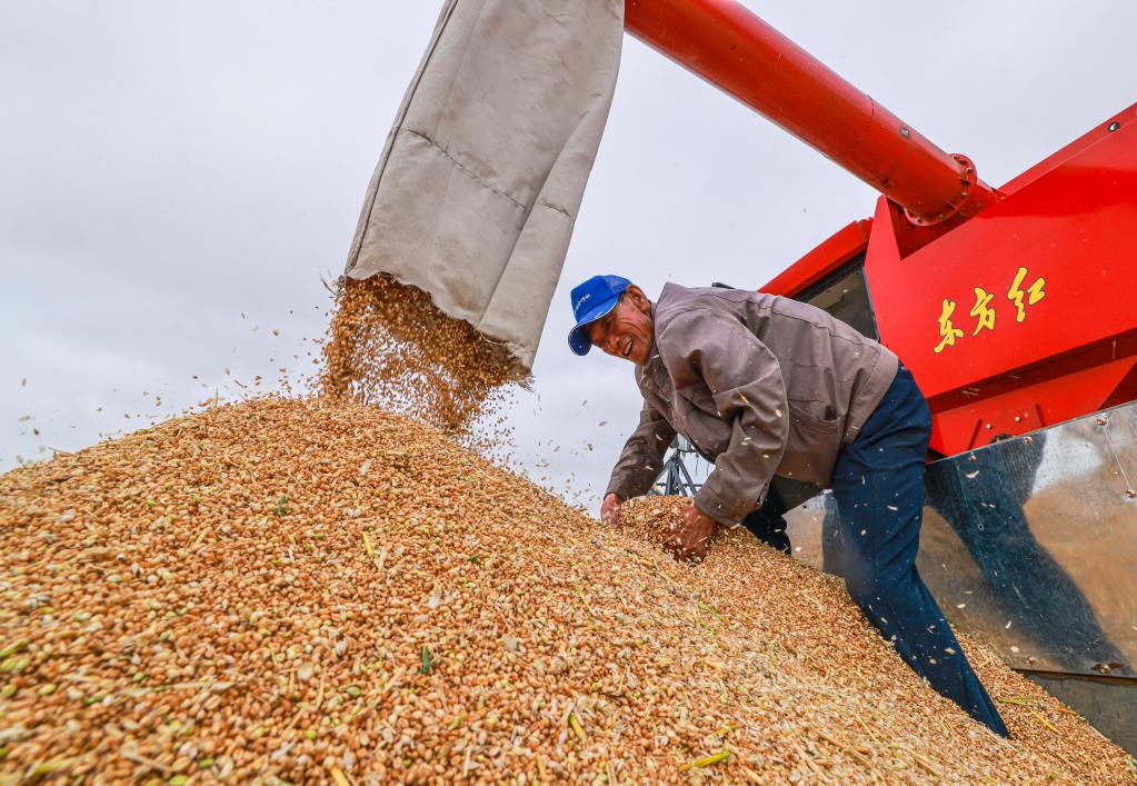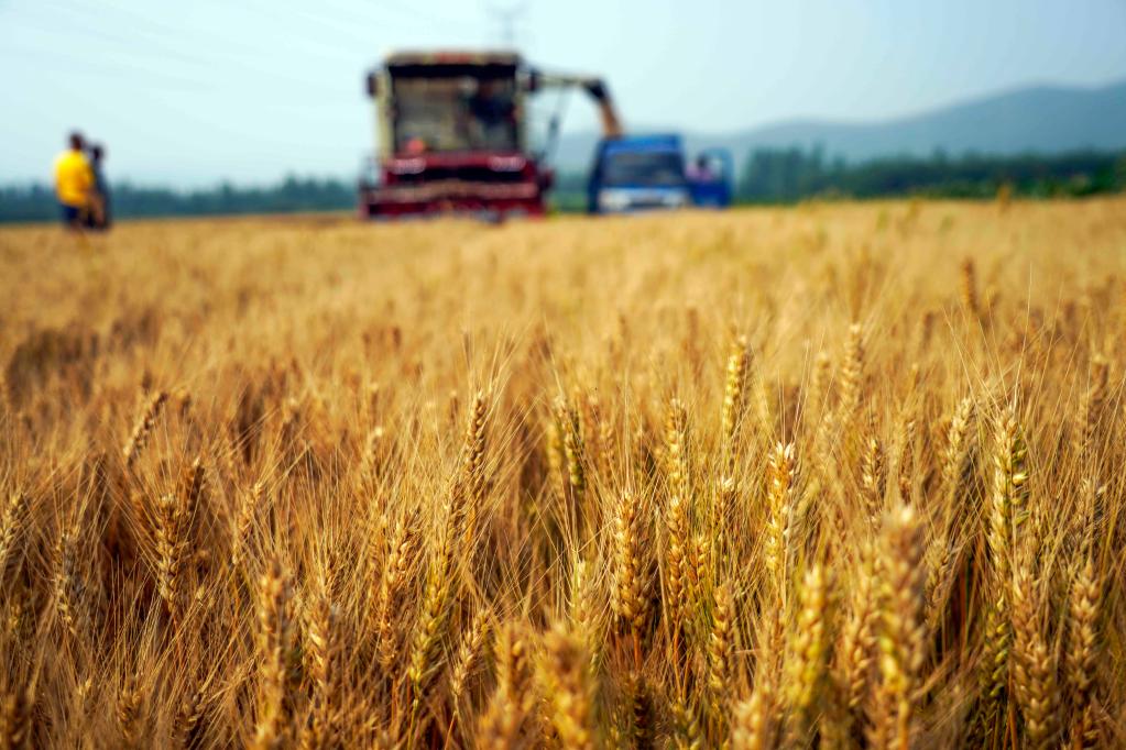 2022年6月19日,河北省遵化市劉備寨鄉(xiāng)的農(nóng)民將收獲的小麥裝車(chē)。新華社發(fā)(劉滿倉(cāng) 攝)
